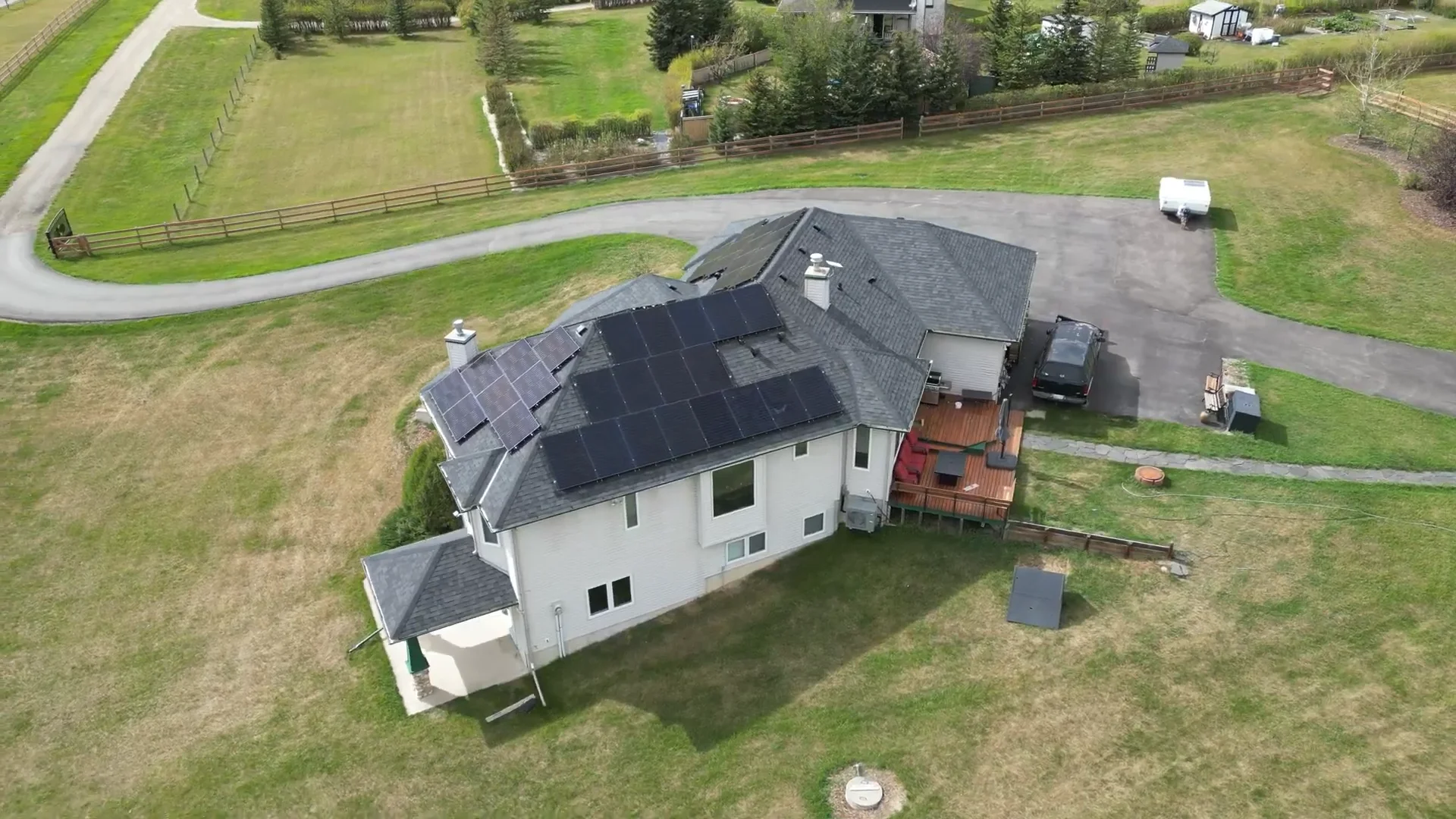 This ground mount was designed to offset the homeowners electricity usage which included a beautiful acreage property with an electric vehicle for drives to the city.